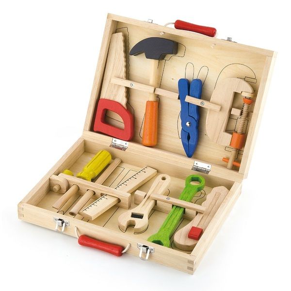 Tool Box 10 pcs Вес, кг 0.97 kg Размер товара 29 х 21 х 5.5 cm Brand VIGA Возрастная Группа 3-6 лет Размер коробки 29 x 21 x 6 cm
