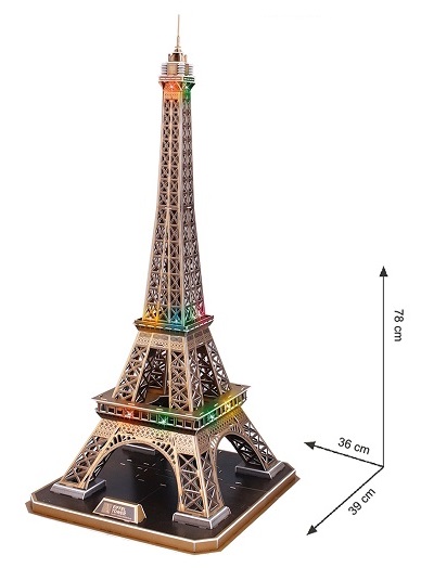 3D PUZZLE Eiffel Tower LED Размер товара 78 х 39 х 36 cm Размер коробки 33 x 28 x 6 cm Brand CubicFun Возрастная Группа 6-12 лет, старше 12
