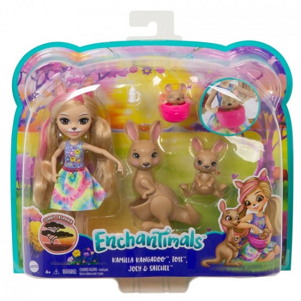 Enchantimals Set Familia Cangurului Camilla Встречайте Enchantimals — компанию очаровательных девочек, имеющих особую связь со своими лучшими друзьями-зверушками. Игровой набор «Семья Кенгуру Камиллы» с куклой Кенгуру Камилла, 15,2 см в высоту, из серии «Солнечная саванна» Enchantimals и ее маленькими друзьями — кенгурятами Тоте, Джое и Сатчел, поможет вам почувствовать себя частью веселых приключений в саванне. Чтобы маленькие модницы могли с удовольствием играть, кукла носит юбку и туфли, которые можно снимать, а также поясную сумку, куда может поместиться самый маленький детеныш кенгуру. Кенгурята выглядят по-разному, но все очень милые. У взрослой кенгуру Тоте на животе сумка, куда может также поместиться самый маленький член семьи — Сатчел. Для большей реалистичности в этом наборе есть бутылочка, с помощью которой можно кормить маленьких кенгурят. Кенгуру Камилла и ее друзья Тоте, Джое и Сатчел — настоящие гимнасты — всегда находят возможность допрыгнуть до приключений. Дети с восторгом будут разыгрывать сценки между членами этой особой семьи. В этот набор Enchantimals из серии «Солнечная саванна» входит семья кенгурят: Кенгуру Камилла (15,2 см), 3 друзей-зверушек и 1 аксессуар-бутылочка. Малыши будут в восторге от 4 персонажей! Цвета и аксессуары могут отличаться. Brand Enchantimals Возрастная Группа 3-6 лет, 6-12 лет