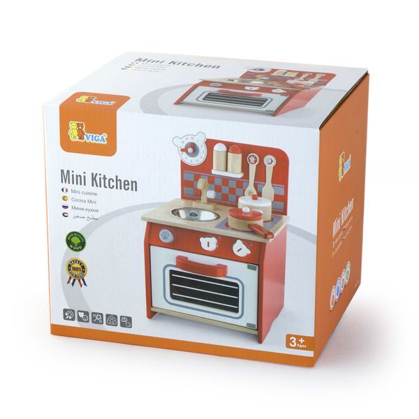 Mini Kitchen Благодаря этому набору маленький повар ежедневно будет радовать вас своими кулинарными шедеврами. Набор включает плиту, духовку, раковину, часы с подвижными стрелками. Также есть все необходимые аксессуары — ложка, кухонная лопатка, кастрюля с крышкой, ковш с крышкой и две емкости для специй. Размер товара 42 х 30.5 х 23.5 cm Brand VIGA Возрастная Группа 3-6 лет Размер коробки 30 x 27 x 25 cm