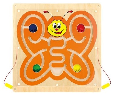 Wall Toy-Magnetic Bead Trace Деревянная доска с изображением милой бабочки доставит детям массу удовольствия. Магнитный лабиринт, который расположен в бабочке, наполнен разноцветными шариками — красными, желтыми, синими и зелеными. Две палочки прикреплены к магнитной доске, таким образом можно практиковать игру двумя руками одновременно. Также одновременно могут играть несколько детей, благодаря чему дети во время игры учатся работать в группе и общаться со сверстниками. Игрушка разработана так, чтобы стимулировать чувства и поддерживать развитие двигательных навыков ребенка. Это идеальное упражнение для ловкости маленьких пальцев. Игрушка также учит логическому мышлению и терпению. Доска украсит декор детской комнаты, детского сада, детской игровой площадки и магазина или кабинета врача. Все выполнено из лакированного дерева, окрашено в безопасные для ребенка яркие цвета, что удовлетворит каждого пользователя и доставит массу удовольствия с удовольствием.