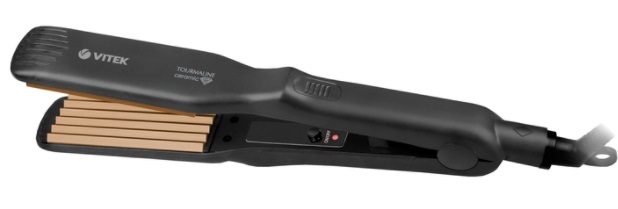 Hair Straighteners VITEK VT-8408, Ceramic coating, 35х90mm floating plate, heats up to 200?С, black тип щипцов: гофрированные покрытие: турмалиновая керамика мощность: 40 Вт максимальная температура нагрева 200 °C индикация готовности к работе