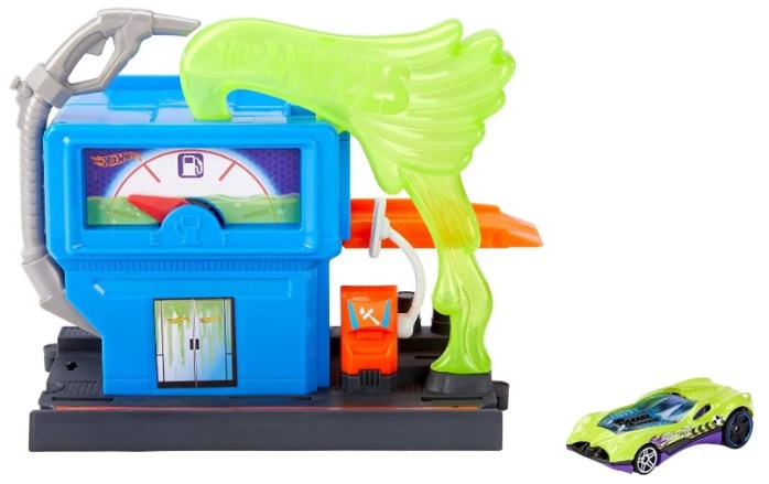 HW Pista Alimentarea Toxica Virsta: 4+ Pentru: Baie?i Hot Wheels Set de joc "Alimentarea toxica" Odata ajuns la sta?ie, trage?i de maneta de alimentare, umpland treptat rezervorul de combustibil al ma?inii. Cand sageata de la benzinarie se muta in zona rezervorului plin, ma?ina va merge spre aventura. Fiecare set distractiv ofera o varietate de moduri de a-?i scrie propriile pove?ti bazate pe jocuri creative cu ma?ini Hot Wheels. Totul se conecteaza! Fiecare set poate fi conectat la alte seturi Hot Wheels City ?i la track-uri portocalii Hot Wheels. Include o ma?ina Hot Wheels scara 1:64. Varsta recomandata: 4 ani + Возраст: 4+ Для: Мальчиков Игровой набор "Токсическая дозаправка" Заехав на станцию ??- тяни рычаг заправки, постепенно наполняя топливный бак машины. Когда стрелка на заправочной станции переместится в зону полного бака - машинка отправится навстречу приключениям. Каждый увлекательный набор предоставляет множество возможностей для сочинения собственных историй на основе творческих игр с машинками Hot Wheels. Все соединяется! Каждый набор можно подсоединить к другим наборам Hot Wheels City и к оранжевым дорожкам Hot Wheels. В комплекте одна машинка Hot Wheels 1:64. Рекомендуемый возраст: 4 года