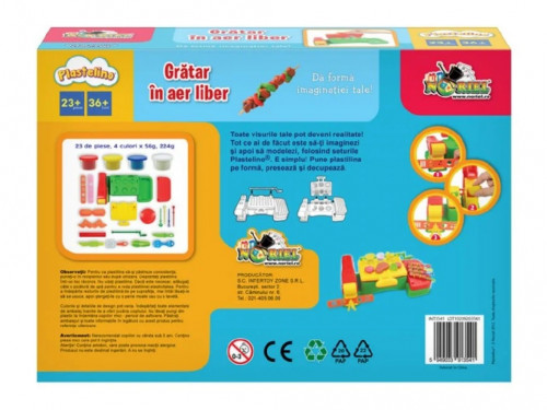 Plastelino - Gratar in aer liber Vоrsta: 3+ Pentru: Ambisex Set de joaca Plastelino "Gratar in aer liber" Toate visurile tale pot deveni realitate! Tot ce ai de facut este sa-ti imaginezi si apoi sa modelezi folosind seturile Plastelino. E simplu! Pune plastilina pe forma, preseaza si decupeaza. Set tematic cu plastilina de modelat 224 g (4 culori x 56 g) si accesorii. Setul contine: 23 piese Varsta recomandata: de la 3 ani Возраст: 3+ Для: Всех Пластелино Игровой набор "Летнее барбекю" Все ваши мечты сбудутся! Все, что вам нужно сделать, это представить, а затем моделировать с помощью наборов Пластелино. Это просто! Выложите пластилин на форму, прижмите и вырежьте. Тематический набор из 224 г пластилина для лепки (4 цвета по 56 г) и аксессуаров. В наборе: 23 шт. Рекомендуемый возраст: от 3-х лет.