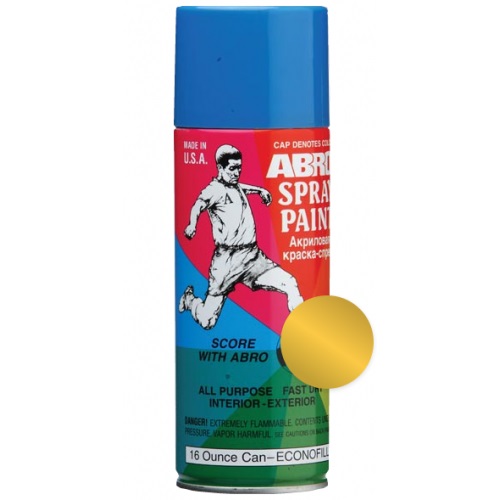 ABRO #029,030 Акриловая краска (хром, золото) 473 гр Краска-спрей ABRO применяется для окраски пластмассовых, металлических и деревянных поверхностей различных предметов как при внутренних (домашних), так и при наружных работах. После высыхания краска-спрей нетоксична