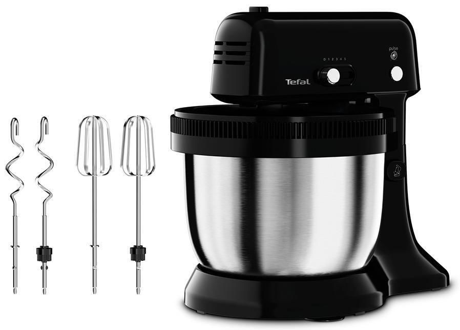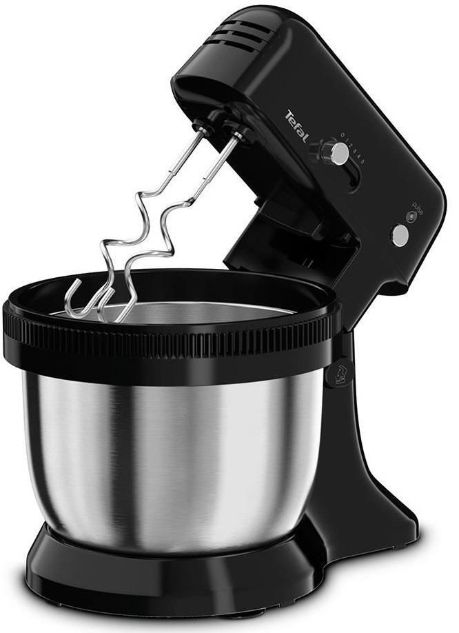 Миксер Tefal QB110838, 300W power output, 4L, 5 speed levels plus pulse level, 2x dough hook, 2x beater, black Тип стационарный Макс. потребляемая мощность, Вт 380 Количество скоростей 5 Импульсный режим да Материал корпуса пластик Материал чаши металл Объем чаши, л 4 Количество насадок, шт. 2 Насадки в комплекте крюк для замешивания теста, венчик для взбивания Венчик для взбивания 2 Крюк для теста 2 Цвет чёрный / серый Вес, кг 2.85 Доп. особенности возможность мытья в посудомоечной машине Производитель Tefal