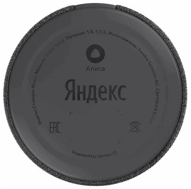 Yandex station mini YNDX-0004B, Black Суммарная мощность (RMS), Вт 3 Кол-во каналов 1 Отношение сигнал/шум, дБ 95 360° звук да Другие особенности 4 микрофона От сети да Интерфейс зарядки от сети Работает от сети да Bluetooth да Wi-Fi да Управление голосом да Поддержка сетевых сервисов Умный дом Яндекса Вес, г 300 Цвет чёрный Производитель Yandex