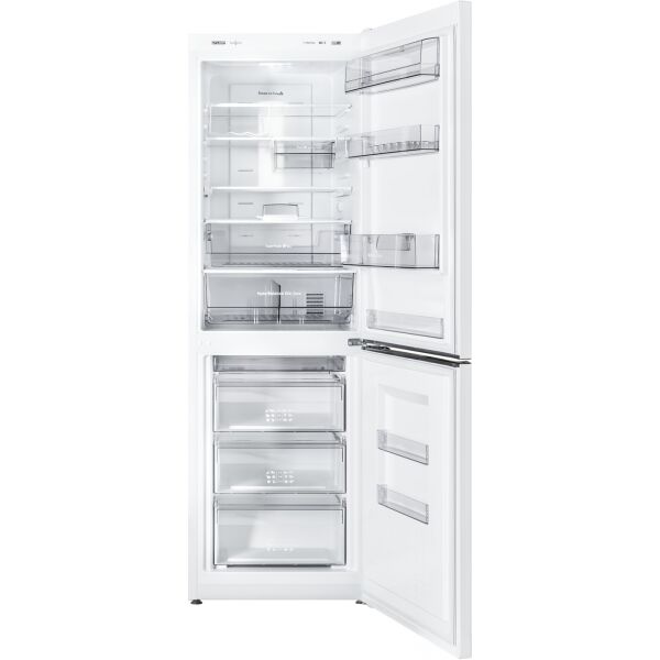 Холодильник Atlant ХМ 4621-109-ND Конструкция С нижней морозильной камерой Количество камер 2 No Frost Полный Количество компрессоров 1 Общий полезный объем 305 л Объем холодильного отделения 211 л Объем морозильного отделения 94 л Зона свежести + Тип управления Электронное Класс энергопотребления A+ Размораживание холодильной камеры No Frost Количество полок 3 Количество отделений 3 Ширина 59.5 см Высота 186.8 см