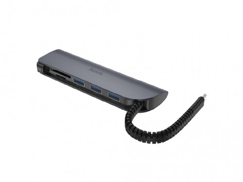 Hoco HB17 Easy Connect Type-C Adapter(Type-C to USB3.0*3+SD+TF), Black Материал изготовления: алюминиевый сплав + ABS корпус. Размеры: 126 * 38.2 * 14.8мм, длина кабеля: 110мм, вес: 60г. Интерфейс: Type-C папа. Расширение: USB3.0 мама * 3 + SD + TF. Скорость передачи: 5Gbps (теоретическая скорость). SD / TF поддерживают SD / SDHC / SDXC, SD3.0 UHS-1. Поддержка одновременного использования двух карт. Выход порта USB:USB3.0 стандартная поддержка до 0.9A / USB2.0: 0.5A. Решает проблему недостатка интерфейсов ноутбука. Совместим с большинством внешних USB устройств, поддержка горячего подключения. Поддерживает OTG телефона, планшета. Совместимые системы: Windows 7 / 8 / 10, Google Chrome OS, Mac OS X Yosemite, Mac OS X EI Capitan, Mac OS Sierra или выше.