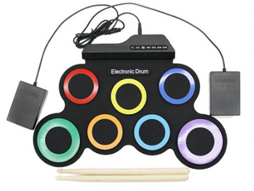 HELMET Roll Drum with Built-in Speakers, 7 pads Electronic, Rainbow Color