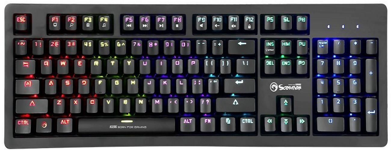 MARVO KG916, Marvo Keyboard Mechanical KG916 Wired Gaming US, Rainbow Blacklight, Anti Ghosting Тип игровая Тип связи проводная Механическая клавиатура да Декоративная подсветка да Цвет чёрный Производитель Marvo