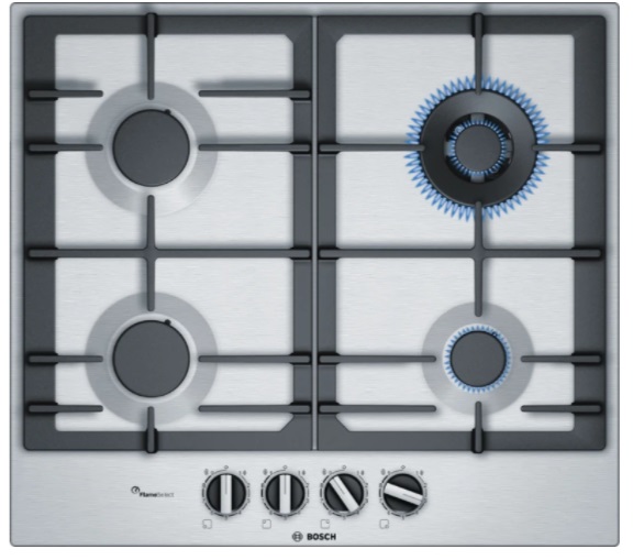 Варочная панель Bosch PCH6A5B90 Количество конфорок 4 Конфорка WOK есть Конфорок газовых "Двойная корона" 1 Материал поверхности нерж.сталь Решетки чугунные Размещение панели управления спереди Электроподжиг есть Газ-контроль есть Цвет нерж. сталь Габариты панели (ВхШхГ) 4,5x58,2x52 см Размеры для встраивания (ШхГ) 56x49 см Вес 11 кг Страна производства Испания
