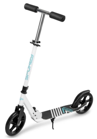 Самокат Spokey Ayas White (929393) Максимальная нагрузка 100 кг Материал алюминий Материал колес полиуретан Количество колёс 2 Ножной тормоз есть Максимальная высота 101 см Размер платформы 55x11 см Складная конструкция есть Регулировка высоты есть Подножка есть Габариты 1010x550x110 мм Диаметр передних колёс 20 см Диаметр задних колёс 20 см Цвет белый/синий Производитель Spokey