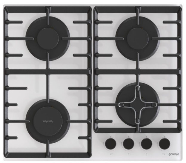 Варочная панель Gorenje GTW641SYW линейка: Gorenje Simplicity материал панели: закаленное стекло количество конфорок: 4 установка: независимая электроподжиг: есть газ-контроль: есть чугунные решетки: есть переключатели: поворотные ШхГ: 60х52 см