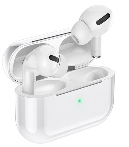 HOCO ES42 Original series TWS wireless headset White Беспроводная гарнитура Hoco ES42 Original series предназначена для прослушивания музыки по беспроводной связи Bluetooth. В комплекте с черным силиконовым чехлом. Поддержка Bluetooth V 5.0, быстрое соединение, рабочее расстояние передачи до 12 м, время зарядки наушников 45 мин., время зарядки блока 1 час, время воспроизведения музыки 3 часа, время в режиме ожидания 150 часов, вес 33 г/4 г. Функция "всплывающее окно" (показывает остаток заряда каждого наушника и зарядного блока), встроенный датчик приближения в гарнитуре, сенсорное управление, возможность ответа на звонки, управление треками, голосовой помощник "Сири", воспроизведение/пауза.