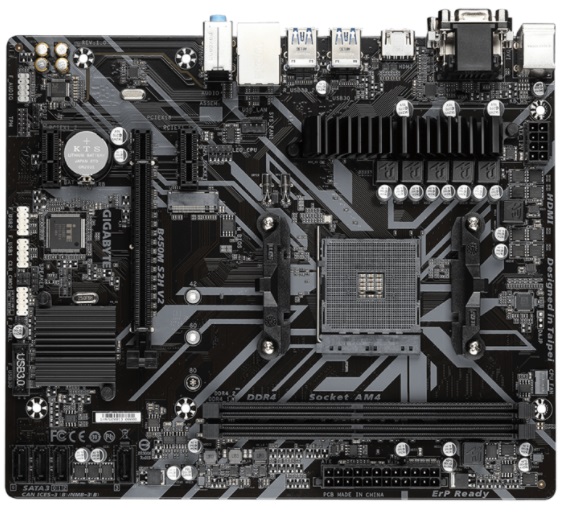 Материнская плата GIGABYTE B450M S2H V2, Socket AM4, AMD B450, Dual 2xDDR4-3600, APU AMD graphics, VGA, DVI, HDMI, 1xPCIe X16, 4xSATA3, RAID, 1xM.2, 2xPCIe X1, ALC887 HDA, GbE LAN, 6xUSB3.1, RGB Fusion, mATX. форм-фактор: microATX сокет: AM4 память: 2 x DDR4 DIMM (2133-3600 МГц) интерфейс M.2: 1 x PCI-E/SATA 3.0 PCI-E x16: 1 слот PCI-E x1: 2 слота разъемы на задней панели: 4 x USB 3.1, D-Sub, HDMI звуковая схема: 7.1 поддержка SLI/CrossFire: нет
