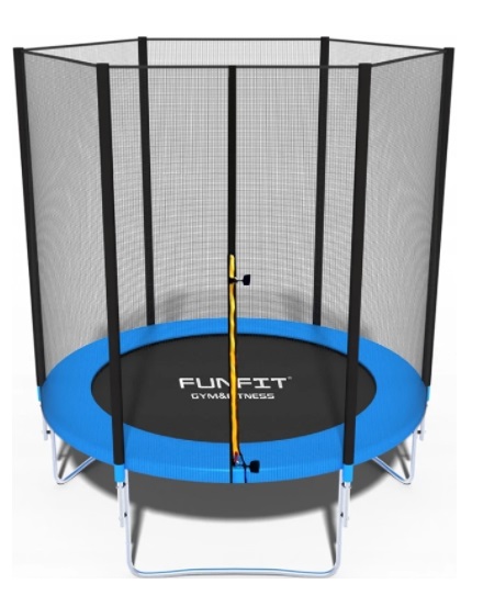 Батут FunFit 840 (183cm) Диаметр 183 см Материал мата полипропилен Цвет чёрный/синий Максимальная нагрузка 90 кг Общая высота 212 см Количество пружин 36 Количество ножек 6 Высота рамы 52 см Сетка есть Высота сетки 160 см Лестница нет Вес 21 кг Производитель FunFit