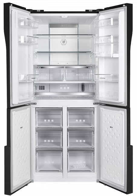 Холодильник Side-by-Side Maunfeld MFF182NFSB DARK INOX Тип установки: Отдельностоящий Габариты (ШхГхВ), мм: 785 x 716 x 1820 Объем, л: 418 Фасад: черная, вороненная нержавеющая сталь Управление: сенсорное Тип компрессора: Инверторный Система No Frost Класс энергопотребления: A+ Тип хладогента: R600A Климатический класс: ST Антибактериальный пластик легкой очистки Энергопотребление кВт.ч/год: 368 Уровень шума, Дб: 43 Холодильное отделение: Объем, л: 274 Внутреннее Led 2 полки из закаленного стекла 6 боковых полок 3 отсека для фруктов и овощей 2 лотка для яиц Морозильное отделение: Полезный объем, л: 144 Мощность замораживания (кг/24 часа): 8 Шесть ящиков для заморозки Емкость для льда Дополнительные функции: "Быстрая заморозка", "Смарт", "Отпуск", "Блокировка от детей", "Сигнал открытой двери", "Отключение памяти", "Задержки включения", "Сигнализация повышения температуры"