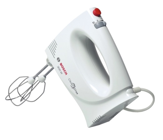 Миксер Bosch MFQ 3010 ручной миксер мощность 300 Вт крючки для замешивания теста, венчик для взбивания кнопка отсоединения насадок вес 0.9 кг