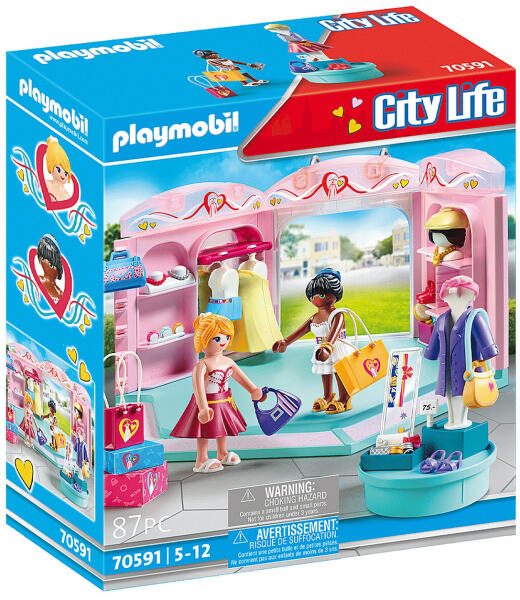 Playmobil PM70591 Fashion Store В модном магазине Playmobil очень много нарядных вещей! Пришло время для еще одного увлекательного шоппинга. Итак, заходим в магазин стильной модной одежды. Здесь вы можете найти самые желанные статьи. Будь то одежда, обувь, сумки или украшения в этом магазине, любители моды обязательно найдут для себя подходящий наряд. Разумеется, дружелюбная продавщица всегда готова помочь и проконсультировать вас, а также всегда готов дать лучшие рекомендации. Идеальный магазин для идеального дня покупок! В игровой набор входит модный бутик с полками, одеждой, обувью, сумками и многими другими модными аксессуарами, а также две фигурки PLAYMOBIL. Одежду можно украсить разными наклейками. В сочетании со Студией моды (70590) и Магазином детской моды (70592) создается приветливая торговая галерея. Фигурки: 2 женские аксессуары: 1 модный магазин