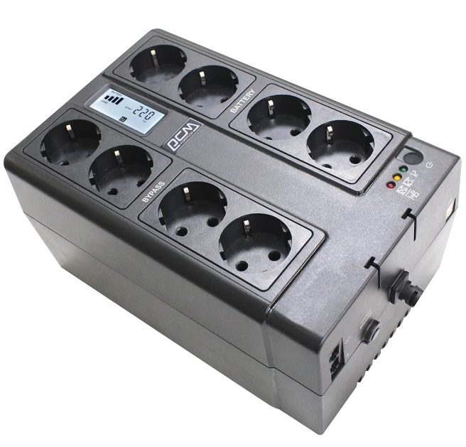 UPS PowerCom CUB-850E 850VA/510W LCD, AVR, USB-B, RJ45/RJ11, 8*Schuko Время зарядки : 8 часов Тип дисплея : LCD Тип архитектуры : Линейно-интерактивные ИБП Активная мощность : 510 Полная мощность : 850 Наличие дисплея : Да Материал корпуса : Пластик Timp de incarcare : 8 ore Tip display : LCD Tip arhitectura : line-interactive Puterea activa : 510 Puterea completa : 850 VA Prezen?a display : Da Materialul carcasei : Plastic