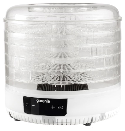 Fruit Dryer Gorenje FDK500GCW,380 W. 5 sections. volume of sections 17.5L. 35-70 °С, timer, white конвективная сушилка электронное управление мощность 380 Вт число поддонов: 5 регулировка температуры сушки пластиковый корпус поддоны из прозрачного пластика дисплей длина шнура 1.1 м размеры 31x31x31 см