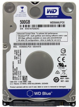 2.5" HDD 500GB Western Digital WD5000LPCX, Blue™, 5400rpm, 16MB, 7mm, SATAIII, FR Форм-фактор 2.5 Дюймов Обьем Накопителя 500 Гб Скорость вращения шпинделя 5400 rpm Объем кэш-памяти 16 Мб Интерфейс SATA III