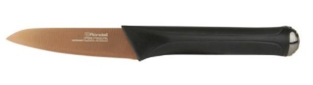 Knife Rondell RD-694 Тип для овощей Материал лезвия нерж. сталь Твердость стали 55 Rockwell Материал рукоятки бакелит Цвет рукоятки чёрный Длина лезвия 9 см Производитель Rondell