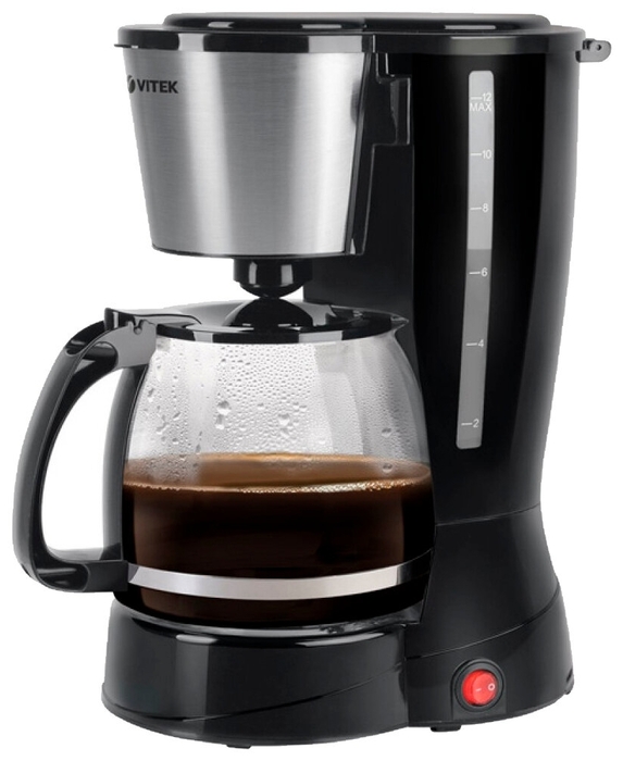 Coffee Maker VITEK VT-1527, Power output 800W, water tank capacity 1,5L black тип используемого кофе: молотый доп. функции: противокапельная система особенности конструкции: индикатор уровня воды, плита автоподогрева, вращающийся фильтродержатель, индикатор включения