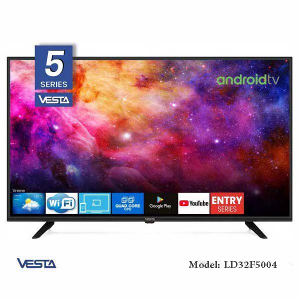 Телевизор Vesta LD32F5004 Тип LED-телевизор Система AndroidTV Google Play Market Система AndroidTV 9.0 Диагональ 32" (82 см) Разрешение HD 1366x768 Цифровой тюнер DVB-T/T2/CТелевизор Vesta LD32F5004