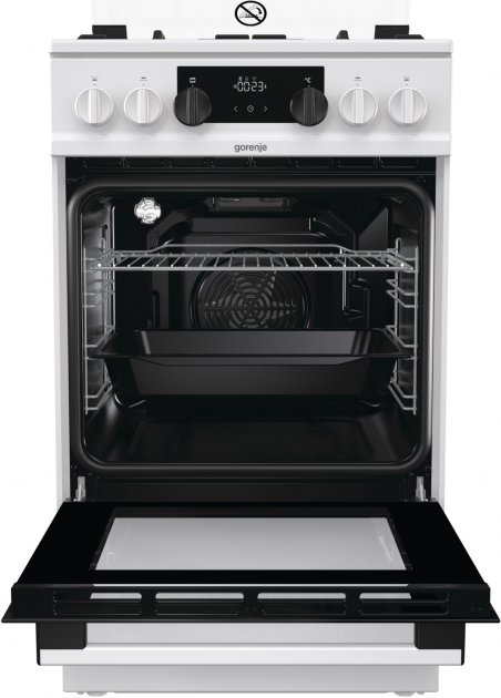 Gas\el cooker Gorenje K5342WF Made in EU- //Комбинированная плита Тип: Отдельностоящая Класс энергопотребления: A Материал панели управления: Крашеный металл Цвет: Белый Цвет ручки: Белый Материал дверцы: Стекло Полезный объем: 70 л