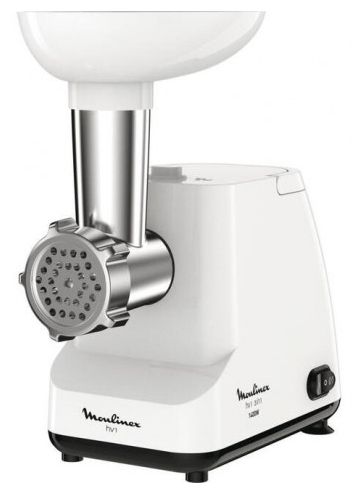 Мясорубка MOULINEX ME111032 производительность: 1.7 кг/мин система реверса: есть насадки: насадка для приготовления колбас, диск для фарша материал корпуса: пластик особенности: прорезиненные ножки