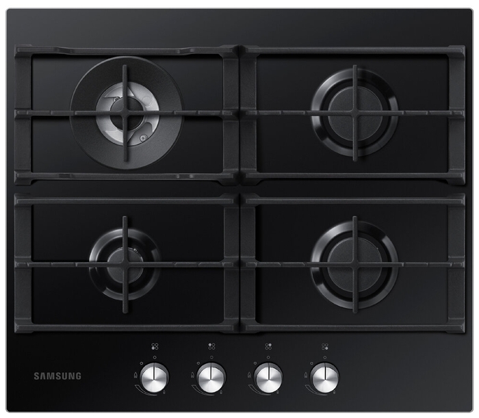 Варочная панель Samsung NA64H3030AK/WT Тип панели: газовая варочная поверхность Установка: независимая Размеры (ШхГ): 60х52 см Размеры для встраивания (ШхГ): 56 x 49 см Специальные конфорки: Тройная корона Материал панели: закаленное стекло