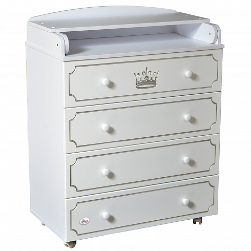 1069 Комод детский Oliver Fabio Lux (белый) Материал: корпус - ЛДСП, фасад - МДФ Колеса: есть Количество ящиков: 4 Размеры столика (ШхД): 760х700 мм Вес: 44 кг