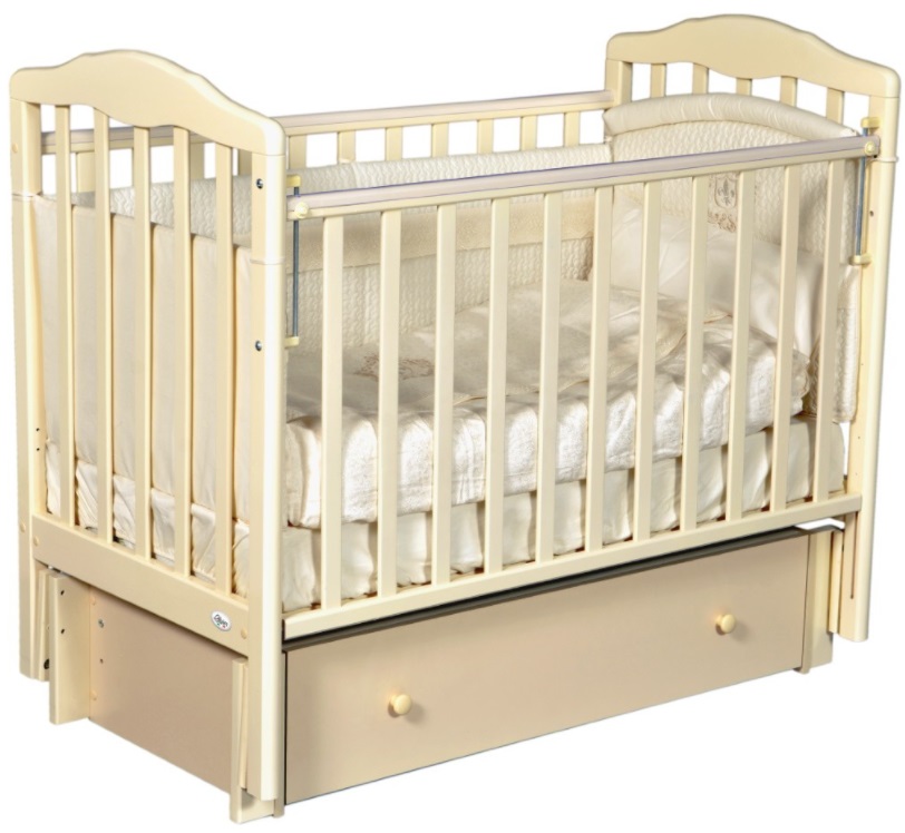 1036 Детская кровать Oliver Elsa Premium (сл.кость) Тип классическая Материал дерево Качающий механизм маятник (универсальный) Кол-во уровней днища 2 Днище реечное Торцевые стенки реечные Боковые стенки реечные Съемная боковина Регулировка высоты боковины Накладки грызунки Ящик / корзина для белья Спальное место 120x60 см Размеры кроватки 127x69x110 см Вес 34 кг