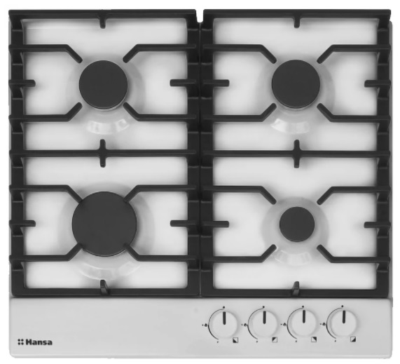 Варочная панель HANSA BHGW630301 Материал панели эмаль Общее количество конфорок 4 Установка независимая Электроподжиг есть Газ-контроль есть Чугунные решетки есть Переключатели поворотные ШхГ 59х52 смВарочная панель HANSA BHGW630301