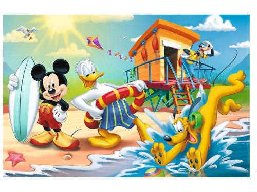 Trefl Puzzles - 60 - Interesting day for Miki and friends Пазл Trefl 60 Interesting Day for Mickey and Friends (17359) Пазлы на 60 элементов с изображением главных персонажей культового анимационного сериала Уолта Диснея - популярного Микки Мауса и его друзей, которые весело проводят свой летний отдых. В сложенном виде размер картинки составляет 22х33 см. Высокое качество, насыщенность цветов и безопасность при собирании пазлов обеспечивает специальный каландрированный картон, который отражает свет и покрыт экологическими красками.