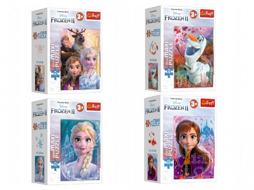 Trefl Puzzles - 20 miniMaxi - Friendship in the Frozen Land / Disney Frozen 2 Холодное сердце-2. Дружба в стране льда Пазлы МиниМакси на 20 элементов с изображениями сестер-принцесс Анны и Эльзы, ихнего друга Кристофа, оленя Свена и снеговика Олафа из долгожданного продолжения популярного "Холодного сердца", которые доступны в 4-х различных вариантах. Пазлы МиниМакси - замечательная идея подарка для родных братьев или сестер, или на детский праздник, ведь каждый получит свою собственную картинку и будет возможность посоревноваться на время и сравнить изображения. При производстве пазлов МиниМакси используются органические краски и картон со светоотражающим покрытием, что гарантирует радость и безопасность во время забавы.