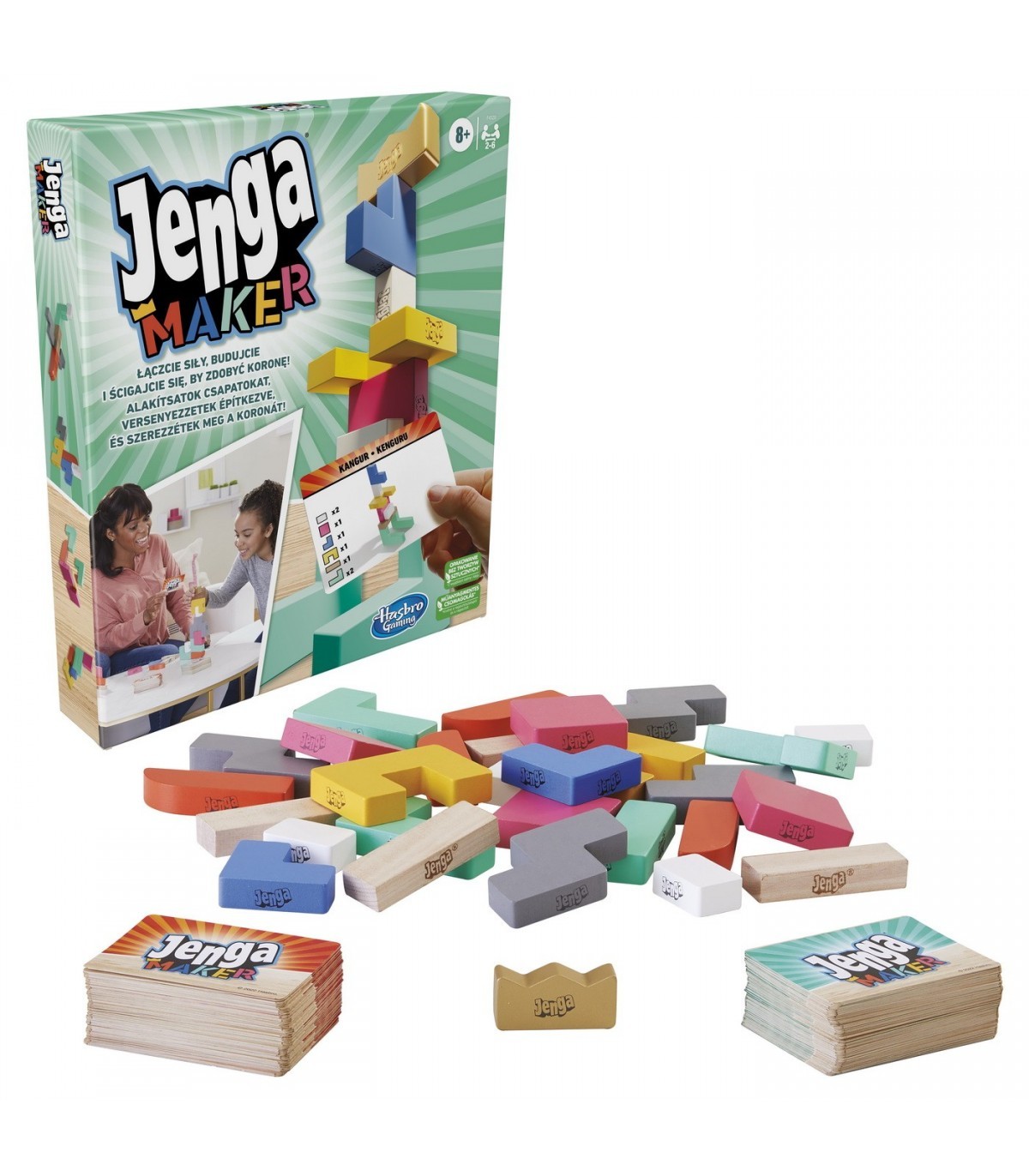 JENGA MAKER Virsta: 8+ Pentru: Ambisex Hasbro Joc de Societate "Jenga Creator" Vrei un joc distractiv pentru seara de jocuri cu familia? Jucatorii se impart in echipe si se intrec pentru a-si construi obiectul Jenga folosind blocurile din lemn de esenta tare. Un coechipier descrie configuratia afisata pe card si ghidati doar de descrierea lor, ceilalti se grabesc sa construiasca si sa incununeze creatia lor. Dar ai grija! Daca o echipa o construieste gresit sau face obiectul sa cada, trebuie sa o ia de la capat. Prima echipa care finalizeaza si incoroneaza 3 constructii castiga! Este o experienta de joc distractiva si provocatoare, care combina prietenia, priceperea, suspansul, rasul si putin noroc. Include 28 de blocuri Jenga din lemn colorate. Fiecare bloc prezinta sigla oficiala Jenga. Numar jucatori: 2 - 4 Varsta recomandata: 8 ani + Возраст: 8+ Для: Всех Hasbro Настольная игра "Дженга Мейкер" Хотите весело провести семейный игровой вечер? Один игрок описывает отображаемую на карте конфигурацию и руководствуясь только своим описанием, остальные спешат построить и увенчать свое творение. Но будь осторожен! Если команда построит его неправильно или заставит его упасть, ей придется начинать все сначала. Побеждает команда, первой закончившая и короновавшая 3 постройки! Это веселый и сложный игровой опыт, который сочетает в себе дружбу, мастерство, интригу, смех и немного удачи. Включает в себя 28 цветных деревянных блоков дженга. Каждый блок имеет официальный логотип Jenga. Количество игроков: 2 - 4 Рекомендуемый возраст: 8 лет +
