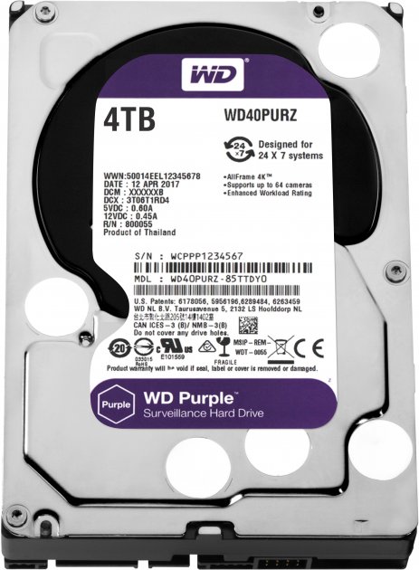 3.5" HDD 4.0TB Western Digital Purple, 5400rpm, 64MB, SATAIII (for video) WD42PURZ