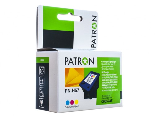 TintaPatron HP57/C6657AE Color HP Deskjet 450/5145/5150/5550/5650/5850/9650/9670/9680/Officejet 4105/4110/4215/4250/5500/5510/5605/5610/6110/6150/Photosmart 7150/7260/7345/7350/7450/7550/7655/7660/7755/7960/PSC 1110/1200/1210/1310/1340/1350 (17ml)