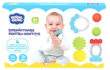 Noriel Bebe-Set Dentitie Virsta: 0 - 3 ani Pentru: Ambisex Noriel Bebe Set "Dentitie" Un set de 4 jucarii zornaitoare cu zone din material moale pentru dentitie, ce poate fi folosit in siguranta de copiii incepand de la 3 luni. Jucariile au un design minimalist si culori asortate si stimuleaza atat simturile, cat si indemanarea celor mici, incurajandu-i sa dezvolte reflexul de a apuca si tine in mana obiecte usoare. Varsta recomandata: 3 luni + Возраст: 0 - 3 года Для: Всех Нориэль Бебе "Набор для прорезывания зубов" Набор из 4 игрушек-погремушек для прорезывания зубов, которые можно безопасно использовать детям от 3 месяцев. Игрушки имеют разные цвета и стимулируют как чувства, так и навыки малышей, побуждая их развивать рефлекс держать легкие предметы в руках. Рекомендуемый возраст: 3 месяца +