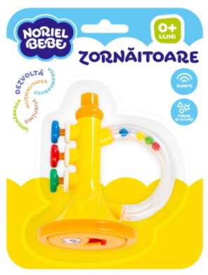 Noriel Bebe - Zornaitoare Trompeta Virsta: 0 - 3 ani Pentru: Ambisex Noriel Bebe Zornaitoare "Trompeta" Asculta sunetul bucuriei dintr-o zornaitoare incantatoare, vesela si colorata! Incurajeaza dezvoltarea urmatoarelor abilitati: indemanare, simturi, muzicalitate, coordonare. Varsta recomandata: 0 luni + Возраст: 0 - 3 года Для: Всех Нориэль Бебе Игрушка "Музыкальная Труба" Слушайте звук радости от очаровательной, веселой и красочной погремушки! Способствует развитию следующих навыков: мастерство, чувства, музыкальность, координация. Рекомендуемый возраст: 0 месяцев +