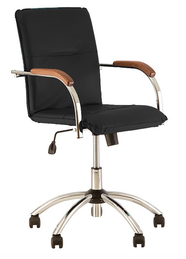 Fotoliu SAMBA RC chrome Тип Кресло руководителя Материал обивки Экокожа Максимальная нагрузка, кг 120 Цвет Черный Регулировки Высота сиденья, Угол наклона спинки Основание Крестовина с роликами Материал корпуса Металл Размеры сиденья 45 х 42 см Размеры спинки Высота: 46 см Высота подлокотников 21 см