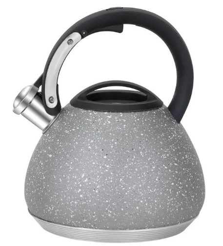 Kettle RESTO 90605, gray Тип Чайник Объем, л 2.7 Материал Нержавеющая сталь Особенности посуды Со свистком, Ненагревающиеся ручки, С толстым дном Вес товара, г 920