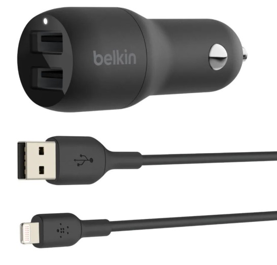 Belkin Car Charger 24W Dual USB-A, USB-A - Lightning, 1m, black Количество выходных разъемов 2 Макс. выходной ток, А 4.8 Макс. выходная мощность, Вт 24 Цвет Черный
