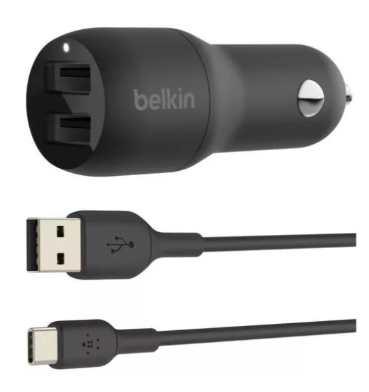 BelkinCarCharger24WDualUSB-A,USB-A-USB-C,1m,black