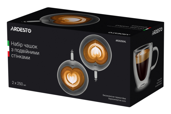 Набор чашек с ручками Ardesto с двойными стенками, 250 мл, H 9,5 см, 2 шт, боросиликатное стекло