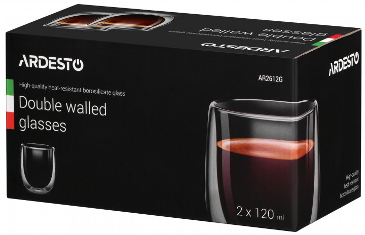 Набор чашек Ardesto с двойными стенками для американо, 120 мл, H 7,5 см, 2 шт, боросиликатное стекло