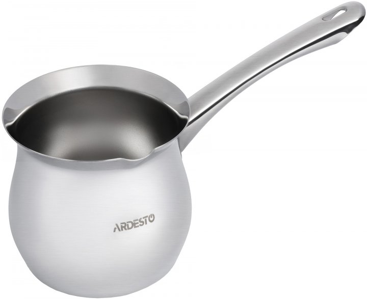 Турка Ardesto Black Mars AR0814S Совместимость с источниками тепла Газовые плиты, Электроплиты, Стеклокерамические плиты Объем, мл 500 Материал Нержавеющая сталь Цвет Стальной Материал ручки Нержавеющая сталь Размеры (ДхШхВ) 11 х 10 х 17 см Дополнительные характеристики Крепление ручки на болтах Страна-производитель товара Турция Вес, г 200